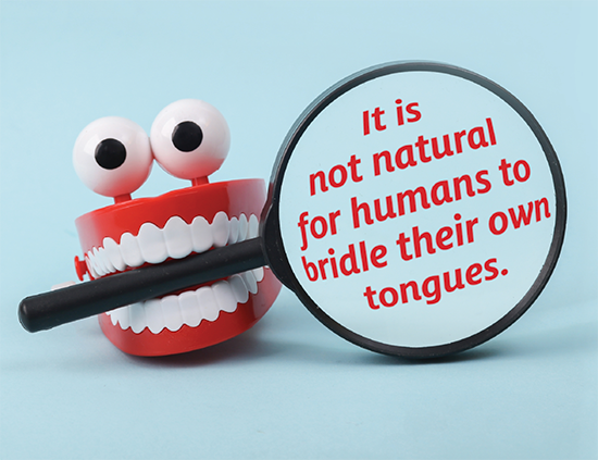 What was James trying to tell us? It is not natural for humans to bridle our own tongues. Only through surrender to the Holy Spirit can our mouths be brought into submission. Aren’t you thankful for His quiet nudge that reminds us to think twice and talk once? That’s essentially what James said in 1:19: Let every man be swift to hear (listen first), slow to speak (think your words through), slow to wrath (don’t react in anger).