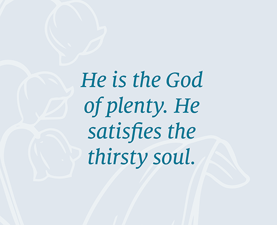 When we ask Jesus to meet our needs, He doesn’t skimp. He doesn’t do a half-way job. He doesn’t just get by. He does exceedingly abundantly above all that we ask or think (Ephesians 3:20). Our cups overflow (Psalm 23:5). He is the God of plenty. He satisfies the thirsty soul. And He provided on this occasion.